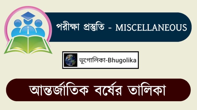 Read MoreList of International Years ভূগোলিকা-Bhugolika-এর ‘পরীক্ষা প্রস্তুতি’ বিভাগে আপনাকে স্বাগত জানাই। ‘পরীক্ষা প্রস্তুতি’ বিভাগের উদ্দেশ্য হল বিভিন্ন প্রতিযোগিতামূলক পরীক্ষা (Competitive