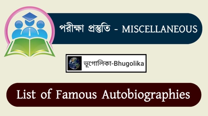 Read MoreList of Famous Autobiographies ভূগোলিকা-Bhugolika-এর ‘পরীক্ষা প্রস্তুতি’ বিভাগে আপনাকে স্বাগত জানাই। ‘পরীক্ষা প্রস্তুতি’ বিভাগের উদ্দেশ্য হল বিভিন্ন প্রতিযোগিতামূলক পরীক্ষা (Competitive