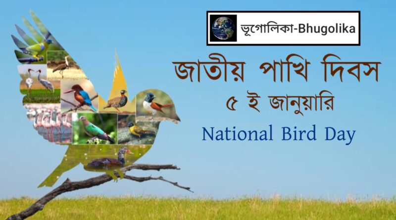 আজ ৫ ই জানুয়ারি (5 January), জাতীয় পাখি দিবস (National Bird Day)। প্রতি বছর ৫ ই জানুয়ারি তারিখটি জাতীয় পাখি দিবস রূপে পালিত হয়। জাতীয় পাখি দিবস পালনের উদ্দেশ্য হল বাস্তুতন্ত্রে পাখিদের গুরুত্ব এবং পাখি সংরক্ষণ সম্পর্কে সচেতনতা বৃদ্ধি করা। ২০০০ সালে স্থাপিত এভিয়ান ওয়েলফেয়ার কোয়ালিশন (Avian Welfare Coalition/AWC) সংস্থা ২০০২ সাল থেকে ৫ ই জানুয়ারি তারিখে আমেরিকা যুক্তরাষ্ট্রে প্রথম জাতীয় পাখি দিবস উদযাপনের সূচনা করে। ভারতেও ৫ ই জানুয়ারি তারিখটি জাতীয় পাখি দিবস রূপে পালিত হয়। ভারত সরকারের পরিবেশ, বন ও জলবায়ু পরিবর্তন মন্ত্রক (Ministry of Environment, Forests and Climate Change) -এর ওয়েবসাইট (https://moef.gov.in) -এর তথ্য অনুসারে, ৫ ই জানুয়ারি হল ভারতের জাতীয় পাখি দিবস।